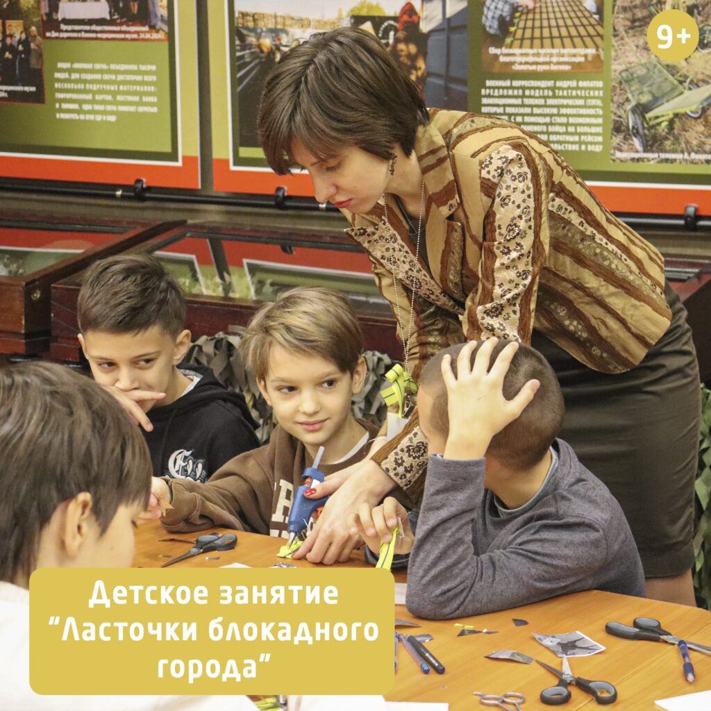 Говорить с детьми о войне тяжело, но необходимо. На занятии участники знакомятся с основными событиями самой тяжелой для города зимы 1941-1942 годов, изучают дневники и письма медицинских работников, санитарных дружинниц и добровольцев отряда противовоздушной обороны – «ленинградских ласточек». Во второй части занятия проводится мастер-класс по чеканке символа блокадного Ленинграда – маленький жестяной значок, а на нем – ласточка с письмом в клюве.