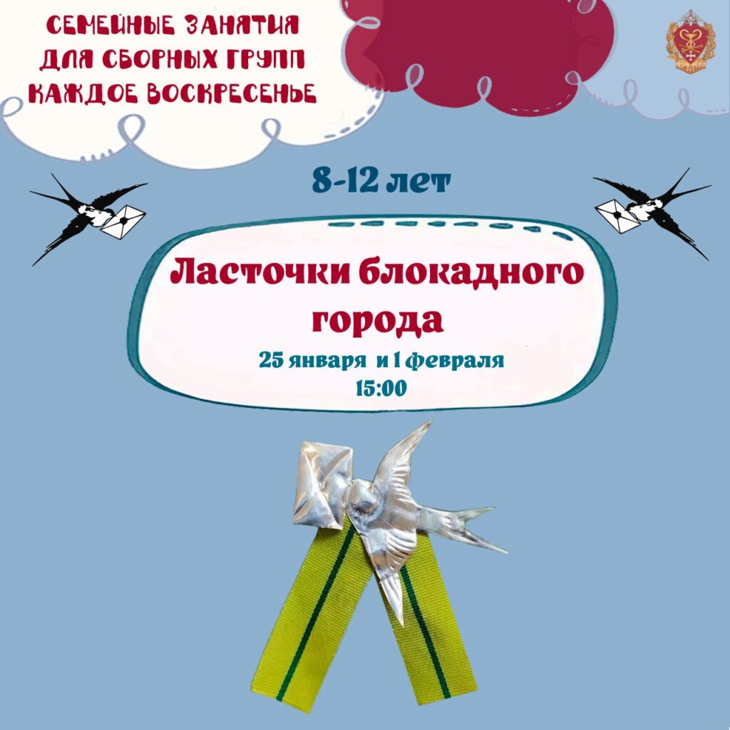 Участники музейного занятия познакомятся с основными событиями самой тяжелой для города зимы 1941-1942 годов, изучат дневники и письма медицинских работников, санитарных дружинниц и добровольцев отряда противовоздушной обороны — «ленинградских ласточек». В конце занятия проводится мастер-класс по чеканке символа блокадного Ленинграда — маленький жестяной значок, а на нем — ласточка с письмом в клюве. Для детей […]