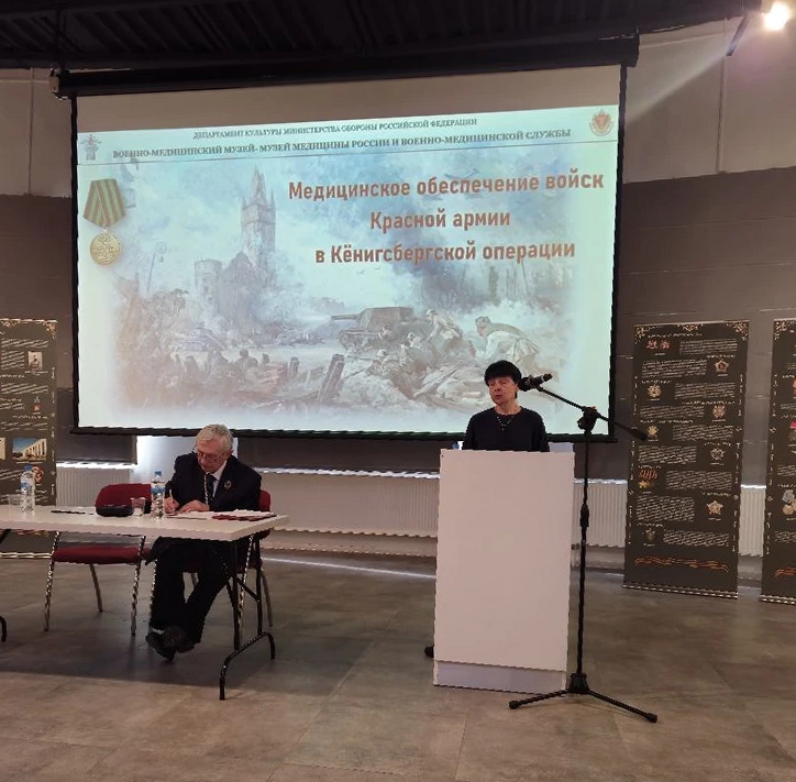 Презентация состоялась в ходе заседания круглого стола, посвященного Кенигсбергской наступательной операции 1945 года. Научный сотрудник музея Татьяна Николаевна Шомина рассказала слушателям о медицинском обеспечении войск Красной армии в этом сражении, представив обширный фактологический и визуальный материал из фондов нашего музея.